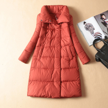 欧洲站2016冬季新款高领长袖女装长款修身茧型保暖羽绒服