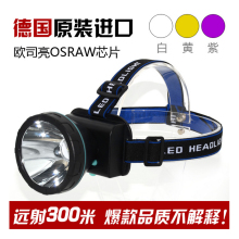九年 LED头灯强光矿灯夜钓蓝白黄光钓鱼灯探照灯充电式手电筒