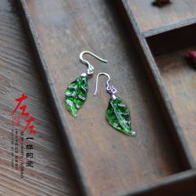 原创古法灯火琉璃琉璃树叶耳环古风古典气质耳饰清新配礼盒