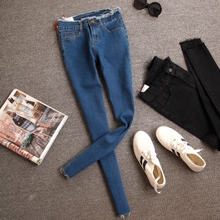 2016秋装女装韩版百搭紧身显瘦高腰弹力破洞九分裤铅笔裤牛仔裤女