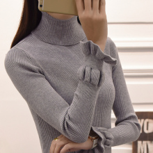 莉米歌秋冬女装高领打底衫毛衣修身荷叶袖黑色中长款套头毛衣女厚