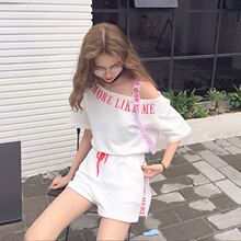 2017夏季新款女装织带字母T恤+休闲短裤时尚两件套学生运动套装潮