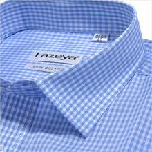 恒源祥衬衫男短袖商务休闲天蓝色小格子纯棉免烫男士全棉免烫衬衣