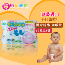 日本原装和光堂手口除菌专用桃叶精华婴儿湿纸巾60抽*3包装精品