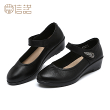 春季妈妈鞋单鞋坡跟大码女鞋真皮中跟中老年休闲皮鞋舒适老奶奶鞋
