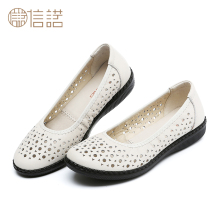 信诺 春夏季真皮软底凉鞋平底休闲中老年女鞋防滑镂空中年妈妈鞋
