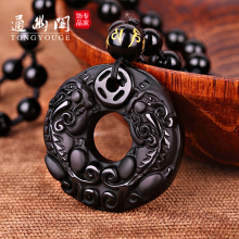 通幽阁开光天然黑曜石双貔貅平安扣吊坠男士女款招财转运项坠饰品