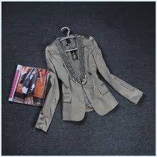 衣佳人折扣.女装剪标◆衣系列 铆钉装饰V字领气质修身短外套
