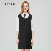 naivee/纳薇女装2016新品蝴蝶结飘带拼接收腰无袖连衣裙修身显瘦