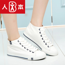 人本经典款帆布鞋女春白色学生简约高帮鞋韩版潮平跟系带小白鞋女