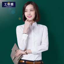 工帝雅圆领平纹暗扣职业衬衫女长袖修身显瘦ol面试正装衬衣秋季