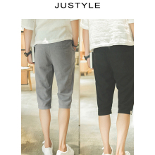 Justyle2017七分裤男生夏季新款潮流棉麻亚麻纯色修身短裤中裤男