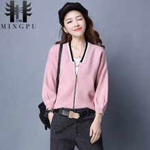 2016春季新款开衫毛衣女韩版百搭时尚棒球服短款外套女装秋冬加厚