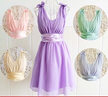 女装甜美公主双肩蝴蝶结短款雪纺礼服 伴娘服姐妹裙装伴娘服