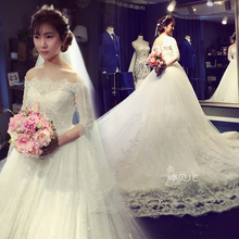 婚纱礼服2017新款新娘长拖尾春季韩式结婚大码长袖显瘦一字肩婚纱