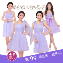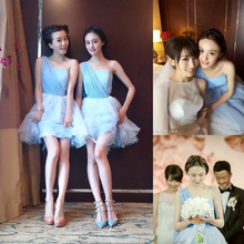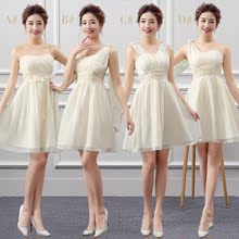 2017伴娘礼服短款单肩小礼服连衣裙伴娘团礼服伴娘服年会礼服