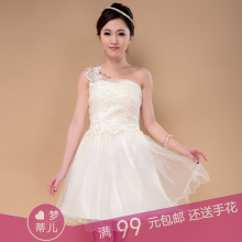 2016韩版短款单肩蓬蓬裙新娘公主婚纱礼服 伴娘小礼服 主持晚礼服