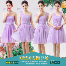 伴娘礼服短款 修身紫罗兰姐妹裙 伴娘团礼服 伴娘小礼服结婚礼服