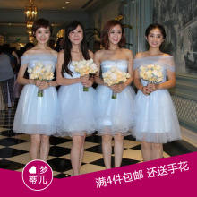 2017春季伴娘礼服短款一字肩伴娘团礼服伴娘服姐妹蓬蓬裙小礼服