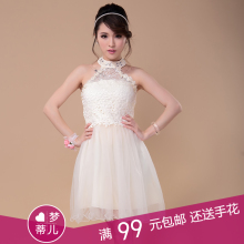 2016春季短款伴娘礼服 伴娘服 挂脖小礼服 公司年会舞台表演礼服