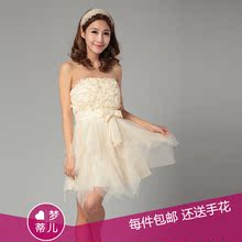 短款小礼服抹胸修身显瘦韩版公主裙伴娘礼服连衣裙礼服2016新版