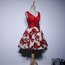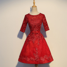 敬酒服2017新款红色蕾丝 钉珠蝴蝶结V领结婚主持人宴会短款小礼服