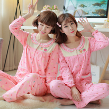 女士纯棉睡衣长袖韩版秋季时尚卡通薄款全棉可外穿家居服可爱套装