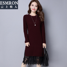 2017秋冬新款内搭外穿假两件套头女毛衣裙中长款大码打底针织衫女