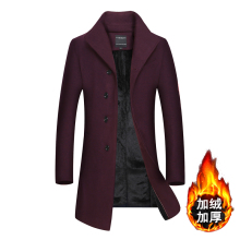 冬季加厚男士毛呢大衣中长款修身加绒妮子外套加大码英伦风衣男潮