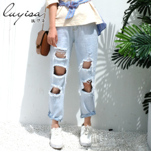 2017夏季新款牛仔裤女九分破洞宽松浅色毛边潮流休闲时尚韩版潮