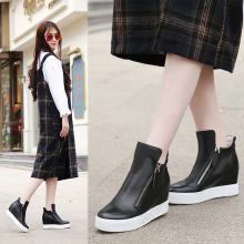 乔圣堡春秋新款真皮女高帮鞋内增高厚底女鞋高跟韩版休闲鞋坡跟鞋