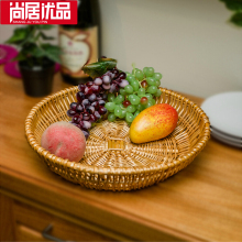 尚居优品 木质大干果盘收纳水果盘藤编收纳篮大号柳编馒头面包框