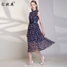 汇欧亚女装2017夏季新款印花雪纺连衣裙收腰A字长裙度假风背心裙