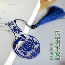 【富贵平安】古典不锈钢花鸟书签金属青花中国风古风礼品