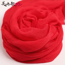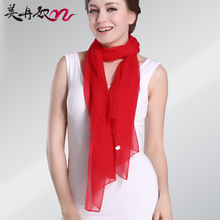大红色真丝丝巾女桑蚕丝正品春天装饰纯色薄围巾夏天飘逸长纱巾