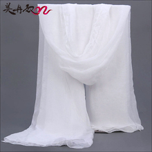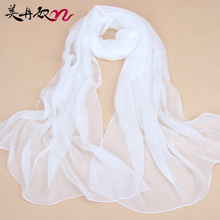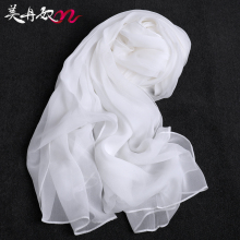 雪白色丝巾女春夏百搭超大长款雪纺围巾纯色纱巾方巾防晒披肩两用