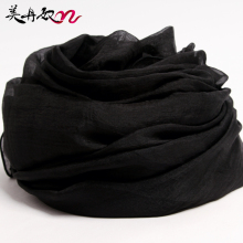 黑色丝巾女春季百搭纯色围巾长款超大纱巾方巾夏天防晒披肩沙滩巾