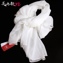 美丹奴白色真丝丝巾春秋百搭超长款桑蚕丝纱巾女纯色轻薄防晒围巾