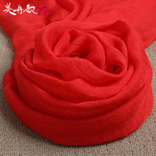 大红色丝巾女春季百搭长款纯色纱巾方巾夏天防晒大披肩中国红围巾