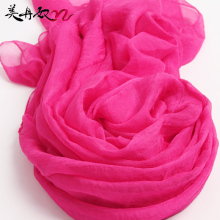 美丹奴 玫红色丝巾女春秋百搭高档纯色雪纺围巾超大防晒纱巾方巾