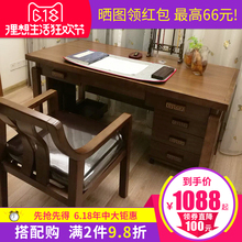 中式实木书桌书架组合家用台式电脑桌学生书桌简约写字台办公桌