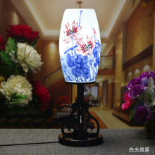 中式复古创意木质青花镂空陶瓷薄胎瓷欧式装饰卧室床头台灯具礼品
