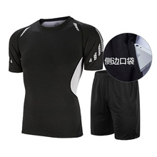 健身服套装男夏速干短袖紧身吸汗健美操跑步衣服透气健身房运动服