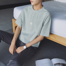 男士短袖t恤春夏季日系宽松半袖青少年圆领五分中袖卫衣潮上衣服