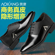 奥康 男士商务内增高皮鞋真皮尖头皮鞋婚鞋男式隐形内增高鞋英伦