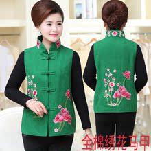 女士春秋马甲坎肩妈妈装马夹外套奶奶背心全棉绣花短款中老年上衣