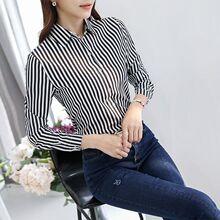 2017春秋季新款韩版修身衬衫女长袖百搭竖条纹衬衣显瘦上衣打底衫