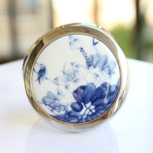 化妆梳妆镜景德镇陶瓷青釉随身便携折叠双面镜放大女礼物青花瓷
