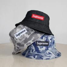 supreme牛仔迷彩渔夫帽韩国男女潮牌黑色盆帽情侣钓鱼帽软顶折叠