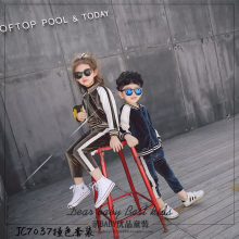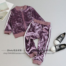 2017春款新款韩版男女童套装儿童金丝绒开衫外套裤子运动两件套